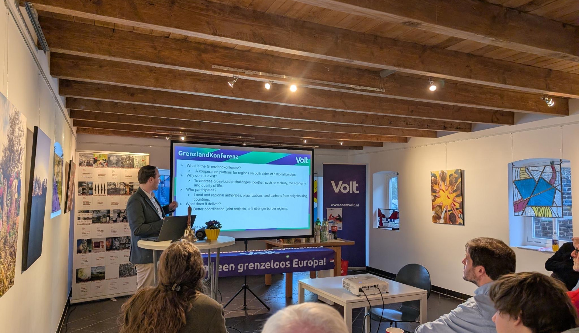 Eind januari reisde Dennis Uenk namens de fractie af naar Suderwick voor een door Volt georganiseerde Eurobabbel. Deze bijeenkomsten zijn voor iedereen toegankelijk en worden mogelijk gemaakt door het Interreg-programma Duitsland-Nederland met medefinanciering van de Europese Unie. Doel van deze bijeenkomst was om inwoners aan beide kanten van de grens beter te informeren over wat de grens in het dagelijks leven betekent. En vooral hoe we grensbarrières kunnen wegnemen.